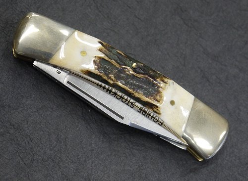 ■全長:95mm(閉時) ■刃長:64mm・44mm・42mm ■ブレード材:440ステンレス ■ハンドル材:スタッグ(鹿角) ■3刀ナイフ。