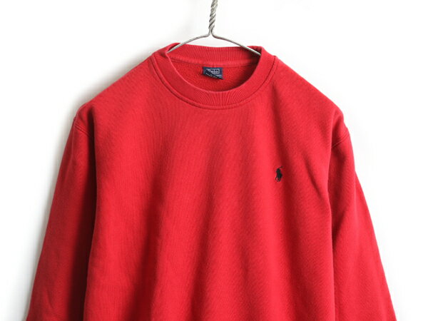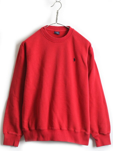 【26日ポイントアップ7倍!!】 90's ボーイズ XL メンズ S 程■ POLO ポロ ラルフローレン ワンポイント ポニー刺繍 スウェット トレーナー ( キッズ ) 古着 赤 オールド| 中古 RALPH LAUREN ラルフ 90年代 レッド 無地 裏起毛 クルーネック プルオーバー アメカジ スエット