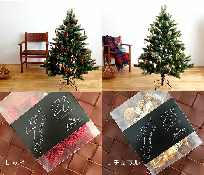 ストローオーナメントセット7PT 素朴が嬉しいオーナメント ナチュラルなストローオーナメント レッド・ナチュラル 2色からお選びください。