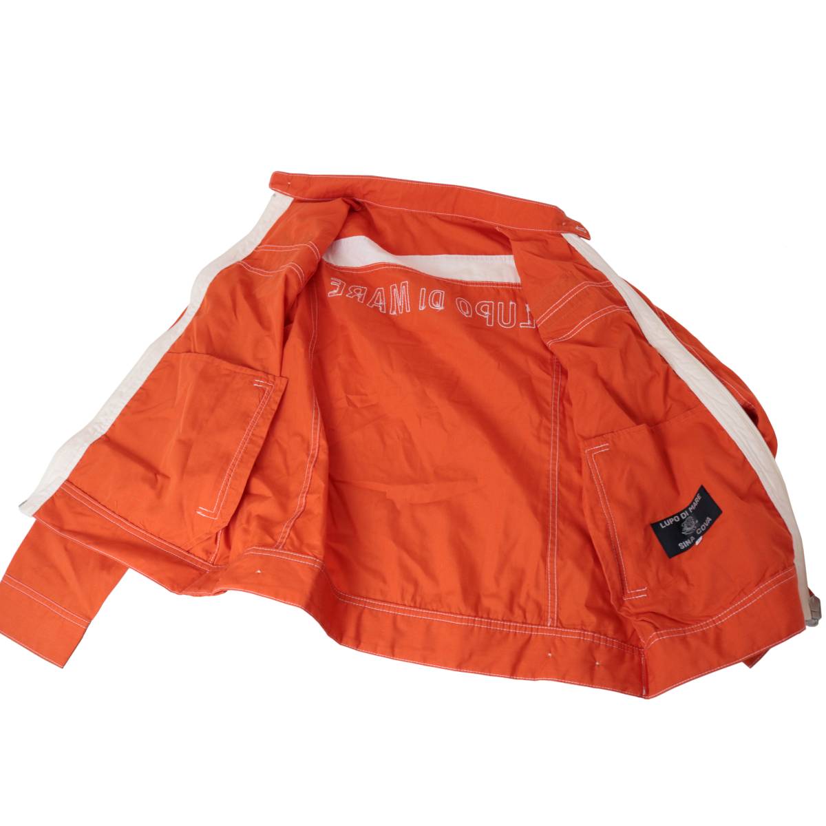 【中古】 SINA COVA シナコバ ジップアップ ブルゾン LUPO DI MARE 刺繍 ワッペン 4P 薄手 オレンジ NT Bランク